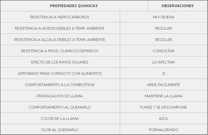 Posee una excelente resistencia a la gasolina, a la resistencia mecánica y contiene una gran estabilidad dimensional.