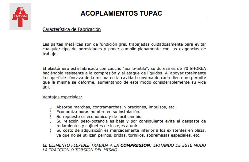El elastómero está fabricado con caucho “acrilo-nitilo”, su dureza es de 70 SHOREA